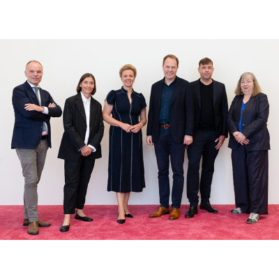 Foto: Vor der Pressekonferenz zur Vorstellung des Abschlussberichts der Gründungskommission für ein Fotoinstitut. V.l.n.r.: Prof. Peter Gorschlüter (Direktor des Museum Folkwang), Prof. Dr. Susanne Gaensheimer (Direktorin der Kunstsammlung NRW), Ina Brandes (Ministerin für Kultur und Wissenschaft des Landes Nordrhein-Westfalen), Dr. Stephan Keller (Oberbürgermeister Düsseldorf), Moritz Wegwerth (Künstler und Fotograf, Vorsitzender DFI e. V.), Inka Schube (Kuratorin, Sprengel Museum).